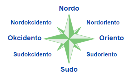 Los puntos cardinales (kompasdirektoj) en esperanto:
