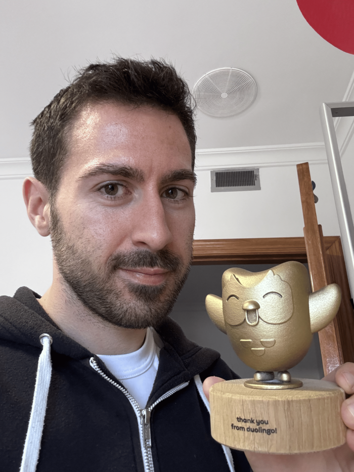 Chuck Smith led the release of the English course, and I was on the founding team for the Spanish one, co-developing 1,947 lessons, packaged in 379 levels across 45 units. That was a total of 2,383 words and 8,464 sentences in the curriculum.